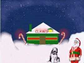 .(c)Santa led Hobo to the fireplace. Once they both crowded into the small opening, he held Hobo by the collar and touched the side of his nose. Hobo felt as though he shrunk to fit the opening and had the feeling of dropping through mid air at the same time. Suddenly they were on the side of a snow covered hill looking downward at an odd building. "I would normally use my reindeer and sleigh to travel," Santa explained, "but the circumstances call for extreme measures. And the reindeer are all locked away in any case." Hobo now observed that things seemed strange. The sign marking the home of Santa looked wrong. |